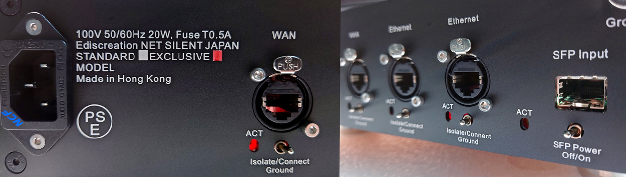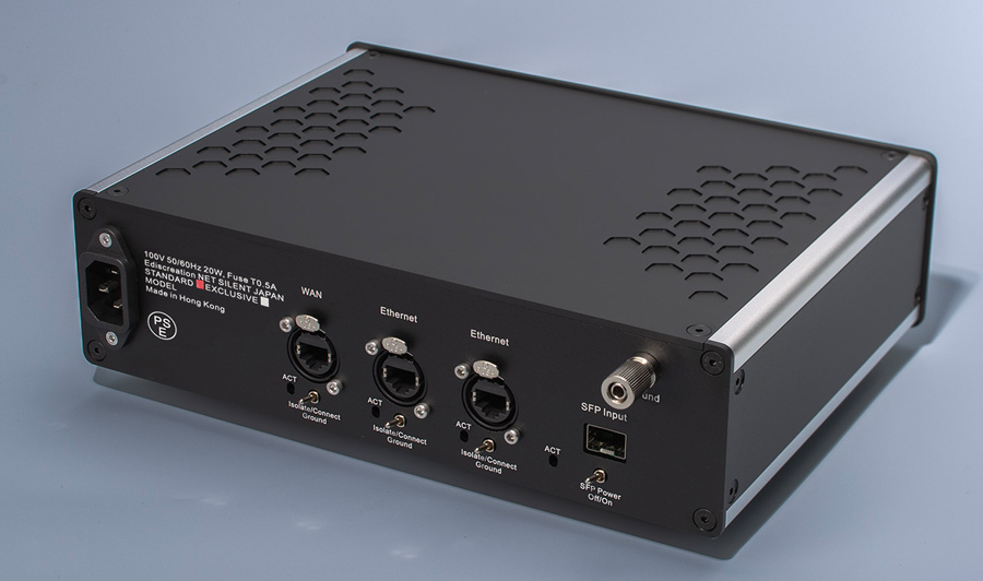 当店では、同社のHUB「silent Switch OCXO2」と光アイソレーター「FIBER BOX 3 JPSM」をメインのシステムに入れています。その上流に今回の『NET SILENT』を組込むのですが、全く同じデザインで正面から見ると私でも、どれがどれだか見分けがつきません。 現在の構成は「NET silent」(ルーター)→「fiber BOX」(ひかりアイソレーター)→「silent Switch OCXO2」(HUB)→「オーディオ機器」でオーディオデーターが流れて行きます。 同社の最大の特徴は、すべての製品に高精度OCXOクロックを搭載、そして世界初のグランドアイソレーションスイッチを装備する事でグランドノイズとループを物理的に遮断し、ノイズフロアーを画期的に下げる事で大きな音質改善を果たしました。