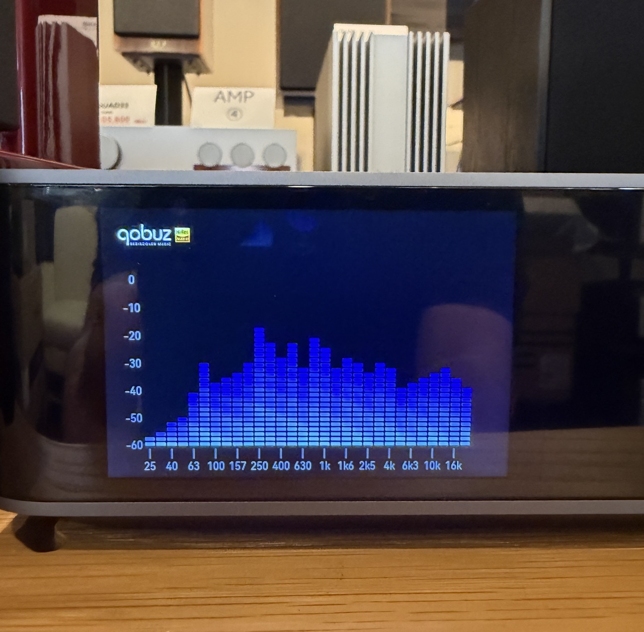 「WiiM Amp Ultra」 には、色んな点で驚かされっぱなしですが、更に驚きなのが、この3.5インチディスプレイの表示を色々と変更できる事、多彩なアルバムアート表示に加えてグラフィック表示、そして最も気に入っているのが、このVUメーター表示です!VUメーターには何故か心惹かれてしまう‼️のは、オーディオマニアの性というものでしょうか? この遊び心には痺れてしまいました‼️